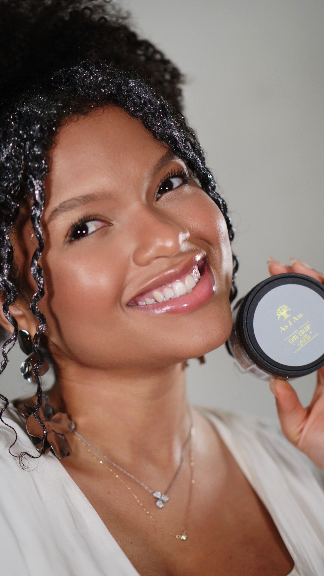 رش كما أنا JBCO المياه بحرية. ضعيه كأنني كلاسيك أو بلسم جي بي كو يترك على الشعر. تنشئ هذه الخطوة الأساسية حاجزا مرطبا بين خصلات الشعر و Curl Color Glitter ، مما يسهل إزالة المنتج بسهولة أثناء الغسيل.
