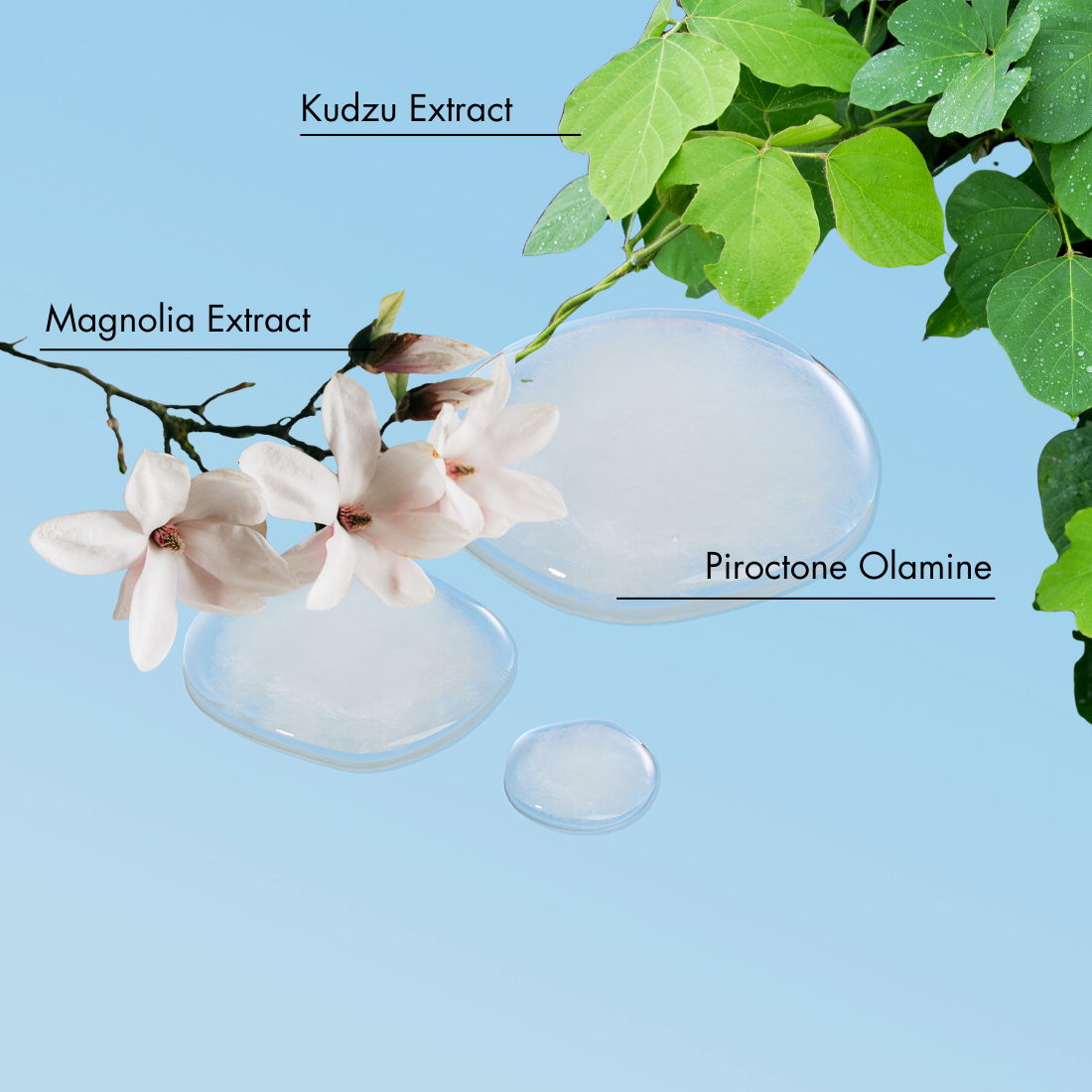 دعم نباتي – غني بمستخلص لحاء الماغنوليا ومستخلص جذر الكودزو (Pueraria Lobata) لتهدئة وتلطيف وحماية فروة الرأس من العوامل البيئية المسببة للتوتر.