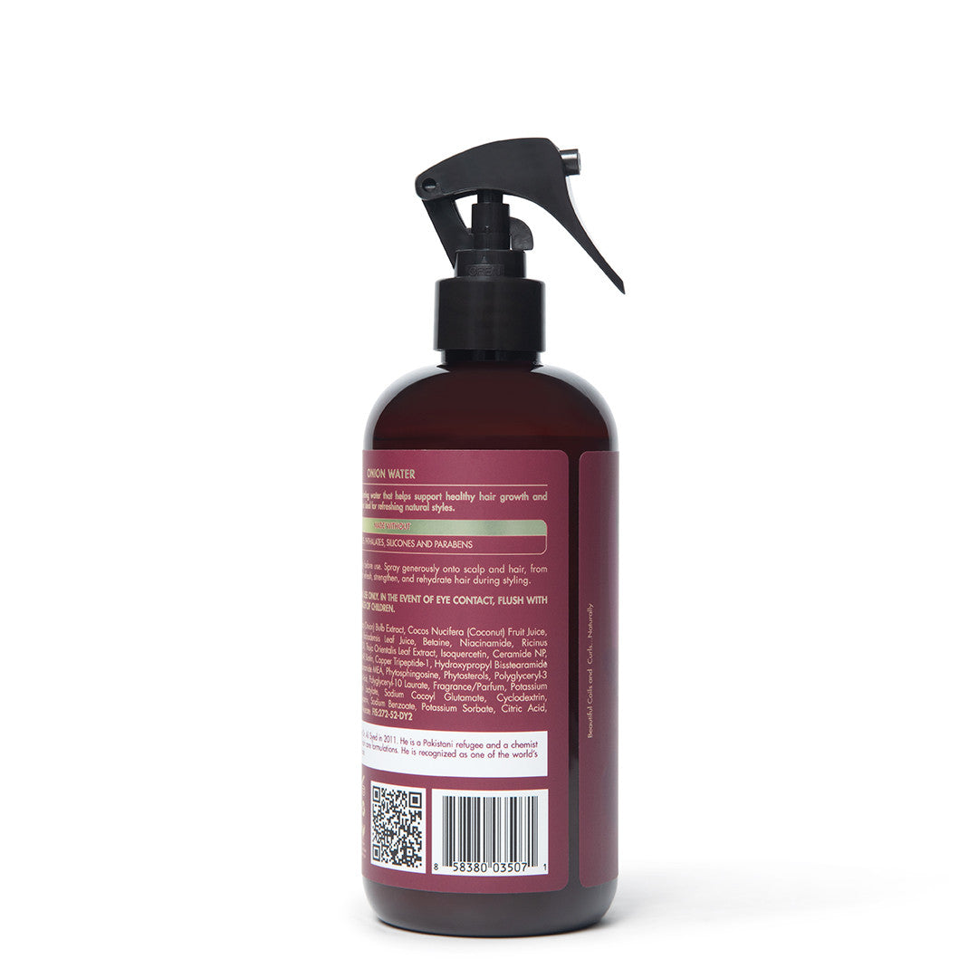 تم تركيب ماء البصل بتركيبة فريدة لتقوية الشعر وترطيبه مع تعزيز نمو الشعر الصحي وتقليل تساقطه. يضفي لمعاناً على الشعر ويدعم الشعر الممتلئ ويرطب الشعر وفروة الرأس بعمق. وهو مثالي لإنعاش التسريحات الطبيعية والضفائر وفروة الرأس.